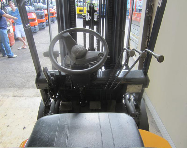 This 2003 TCM Forklift is in great shape It runs and drives like a dream. Everything on it works great and this forklift has a capacity of 5,000 pounds. It also comes with a triple mast and side shift.